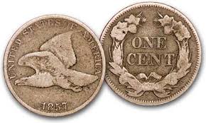History - The coin was designed by James Longacre and was minted from 1856 to 1858. The 1856 Eagle cent was not an authorized mint issue. In 1858, there was a "large letter" and "small letter" variety produced. An easy way to tell the difference between large-letter and small-letter varieties is to look at the word 'America. The A and M in the word AMERICA are joined in the large letter variety and separated in the small letter variety. The most valuable being the 1856 in EF40. I would love to find one of these - thought I did but it turned out to be a canandian penny with a seagull on the back.